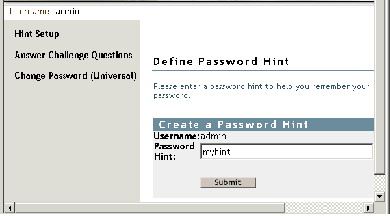 For example, these prompts are necessary to make sure that the user can use Forgotten Password Self-Service. If the password policy requires users to answer Challenge Questions and the user has never configured them initially, the user can't access Forgotten Password Self-Service. If the user has not created a password hint, the user can't retrieve it to help in remembering the password.