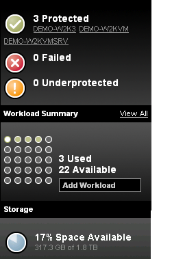 The upper panel icons group the workloads into three categories: Protected, Failed and Underprotected. For definitions of these terms, see Table 2-4.