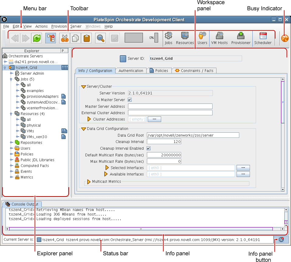 For detailed information about the components, icons, and usage of the PlateSpin Orchestrate Development Client, see Section 2.0, Orchestrate Development Client Menus and Tools.
