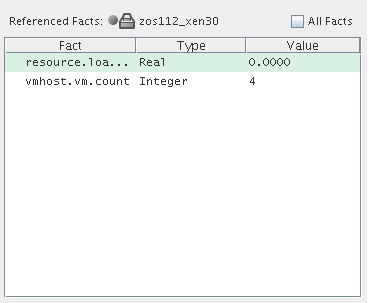 All Facts Check Box: If you select the check box at the top of the Facts Table view, all facts for the selected Grid object, as well as those for the Server itself (matrix.* facts) are displayed.