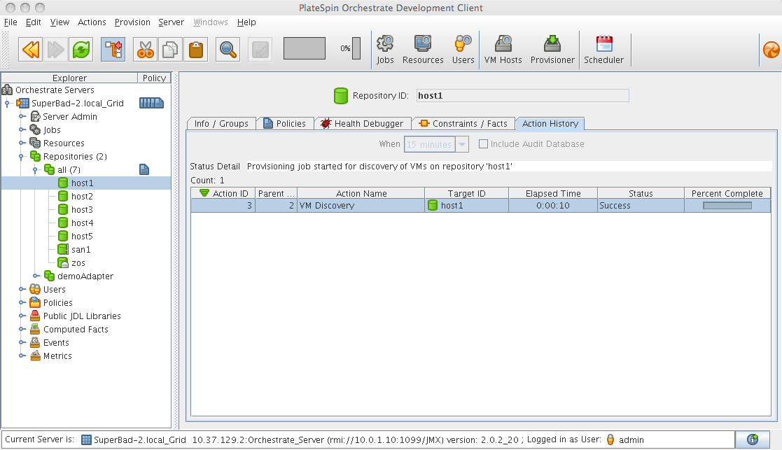 Depending on the Grid object you select, an Action History tab is displayed in several views of the Orchestrate Development Client.