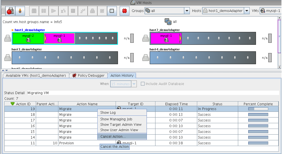 You can see the Action History tab in the VM Hosts monitor view if you select a migrating VM: