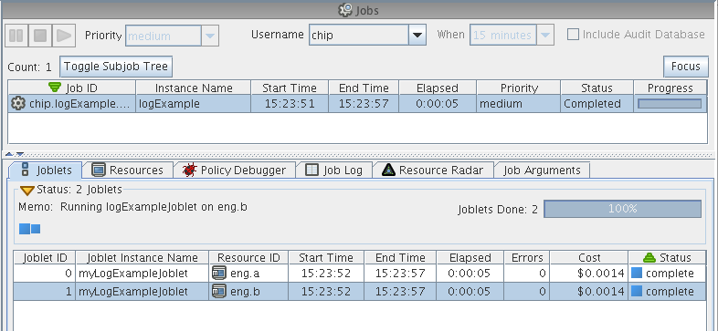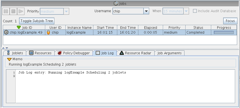 The following sections show some examples how jobs can be logged and debugged: