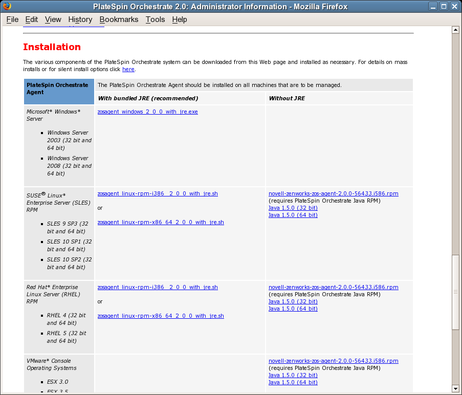 From the Administrator Information Web page for PlateSpin Orchestrate, download the following: