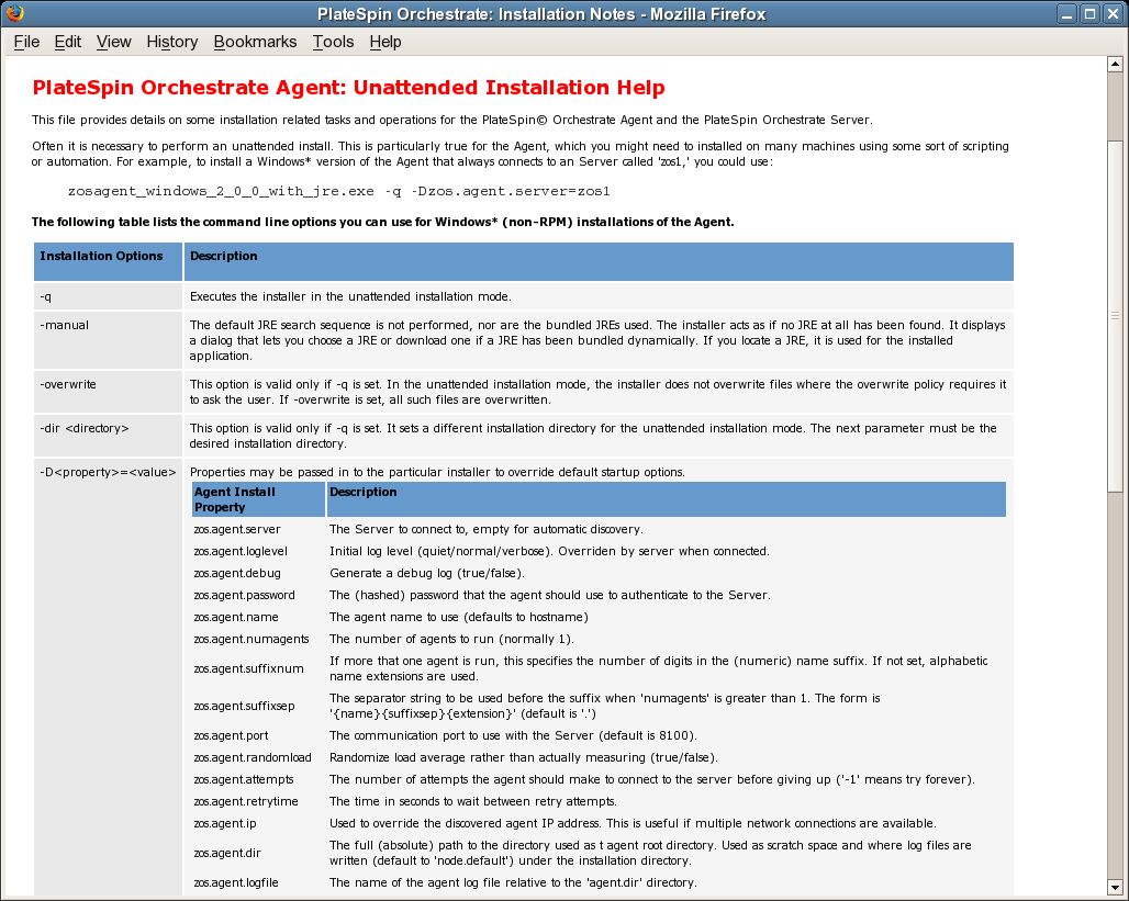 Figure 2-1 PlateSpin Orchestrate Agent Silent Installation Help