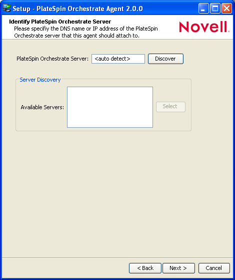 IMPORTANT:When the installation and configuration are complete, you need to register the resources to be managed by the PlateSpin Orchestrate system. Please refer to Section 3.0, First Use of Basic PlateSpin Orchestrate Components for detailed information about getting resources to manage in the PlateSpin Orchestrate system.