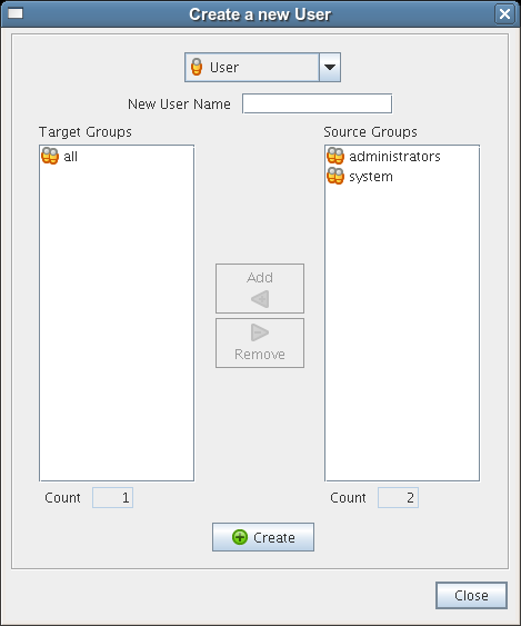 In the Development Client, click > to display an expanded version of the Create a New User dialog box.
