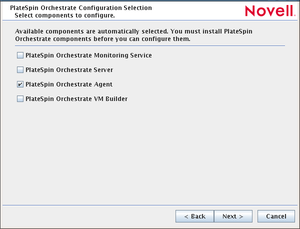 Accept the agreement, then click to display the PlateSpin Orchestrate Configuration Selection page.