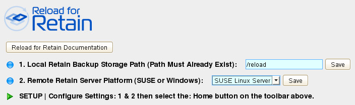 Edit the "Local Retain Backup Storage Path" and provide a directory for the backup data. For example, /data/reload