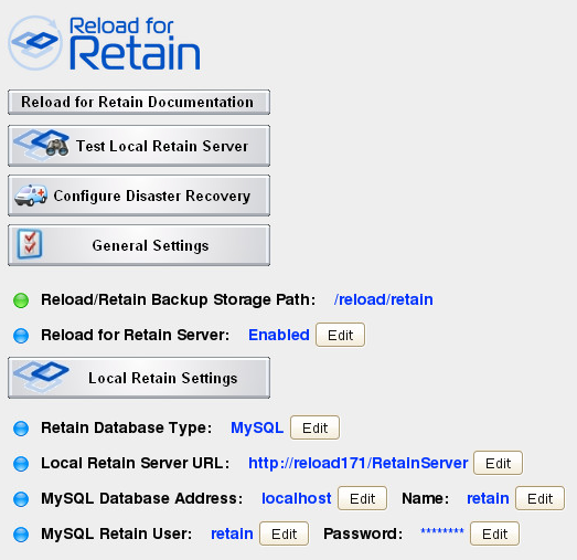 If the Reload for Retain panel does not appear, go to Configure | Web Administration & System Preferences | Show Reload for Retain Server Controls: Enabled