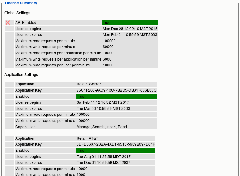Path: Retain Server Manager > Configuration > Server Configuration > REST API Tab > License Summary Panel