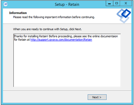Prepare the Retain installation software on the server as instructed in Downloading and Preparing the Retain Windows Installation Source Files.
