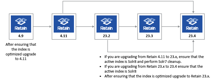 IMPORTANT:The supported path is from Retain 4.11 or later to 23.4.