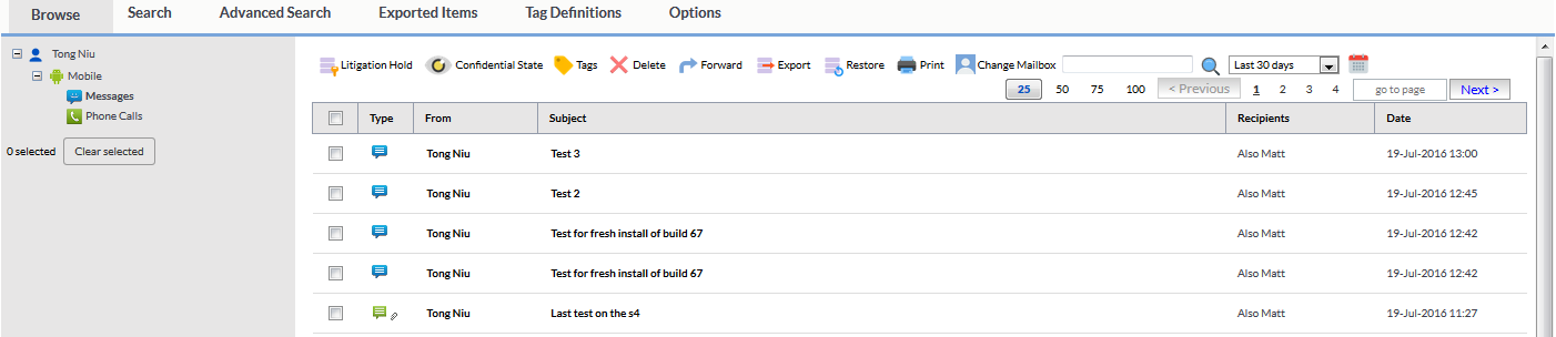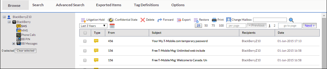 Path: Retain Server Manager > Overview > Search Messages > Browse tab