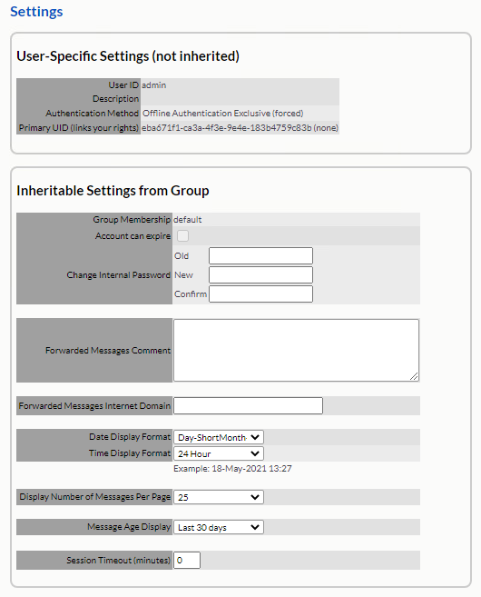 The options section here is exactly like the section in the Administration | Users section. These settings here are specific to the currently logged in user. .
