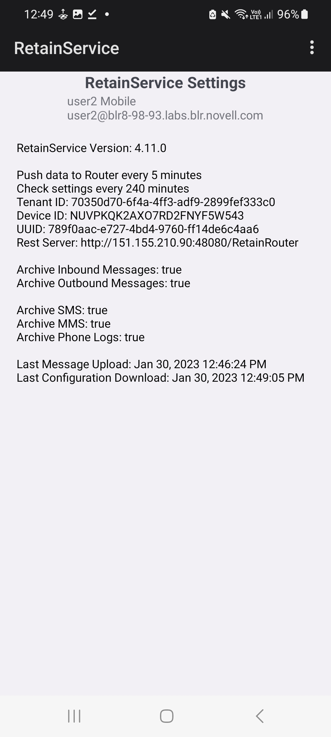 For use with Retain SaaS only. This provides the IEMI ID to be used with Retain Device Management.