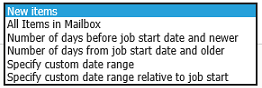 All Items in Mailbox: All items in the mailbox starting from 1/1/1970, duplicates will be processed but not stored if they already exist in the Retain archive.