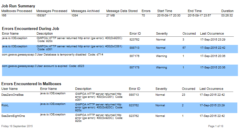 Figure 4-9 A Sample Job Run Mailbox Summary Report