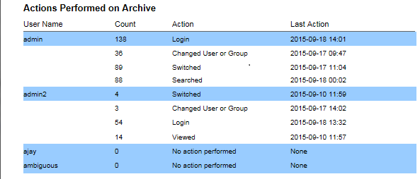 Path: Retain Reporting and Monitoring Server > Report or Schedule Report > Archive Summary by User