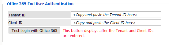 Retain supports modern authentication through users entering their Office 365 credentials to access Retain. This panel sets up the connection with Office 365. The entire setup procedure is documented in Providing Retain Users with Access Through Their Office 365 Accounts