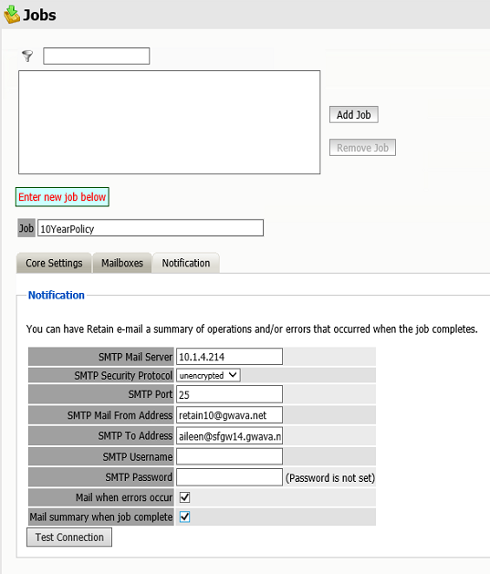 To be notify about errors and/or when the job is complete, fill out this tab. By default it is filled in with the notification data from Server configuration.