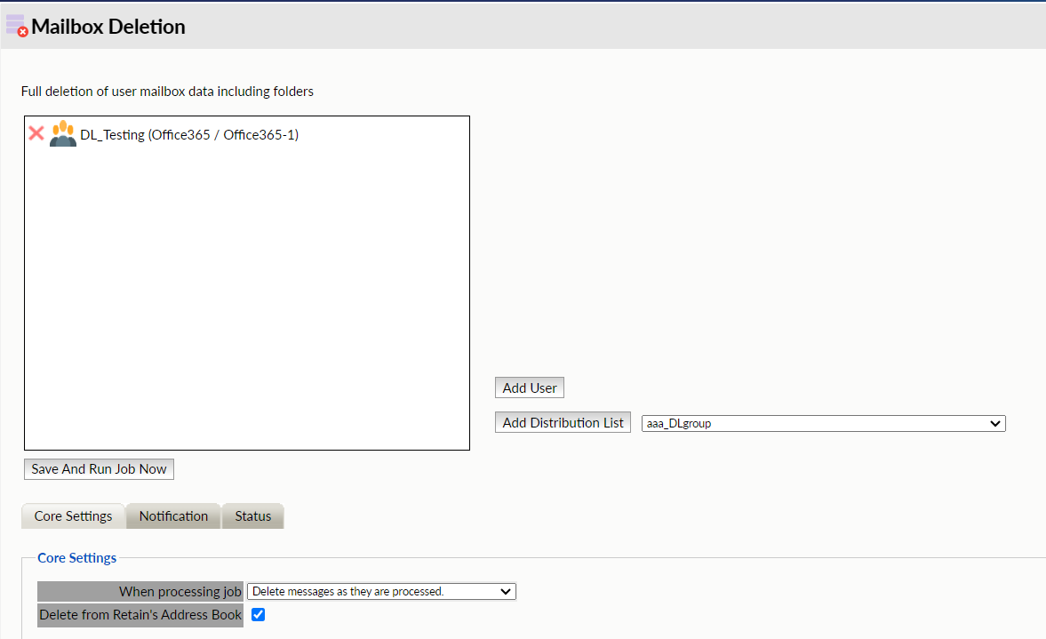 Mailbox Deletion will delete one or more entire mailboxes from Retain.