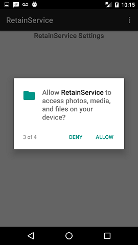 Allow RetainService to access photos, media and files on your device.