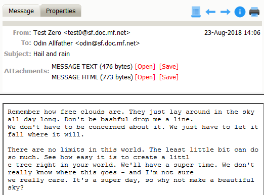 You may double-click on a message to view the contents. From the Message tab you may open (if the proper viewing agent is installed) or save the message or attachments to disk.