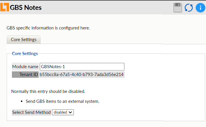 Path: Retain Server Manager > Configuration > Module Configuration > GBS Notes-Configure > Core Settings