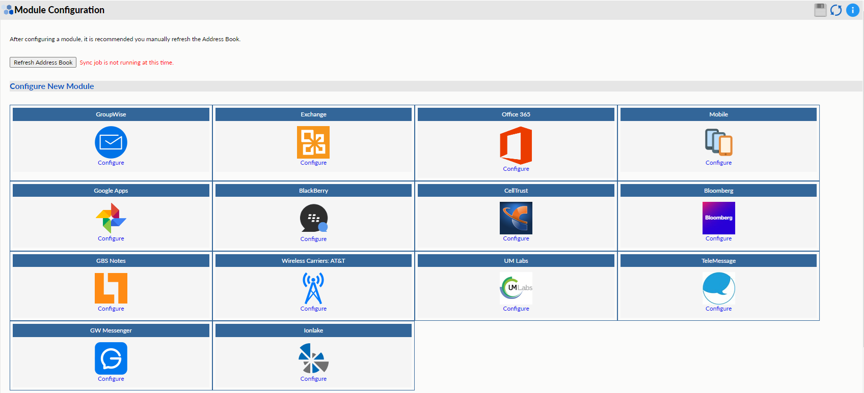 Return to the Module Configuration page and Refresh the Address Book by clicking the Refresh Address Book button. Wait for the refresh to complete.