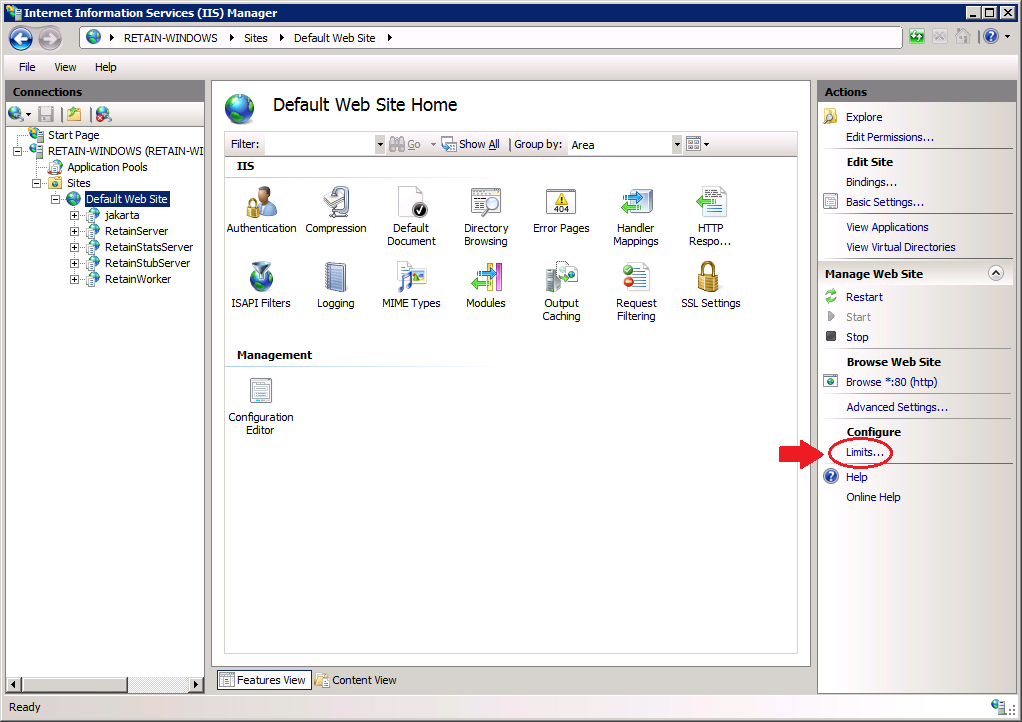 **Note: the "Default Web Site/RetainWorker" piece may vary depending on your server setup. See the picture in the next section.