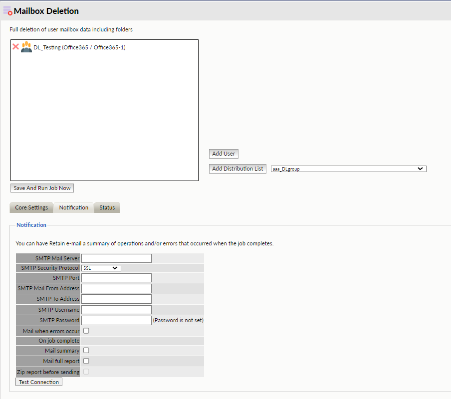 Mailbox Deletion will delete one or more entire mailboxes from Retain.