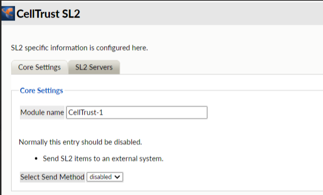 Path: Retain Server Manager > Configuration > Module Configuration > CellTrust SL2-Configure > Core Settings