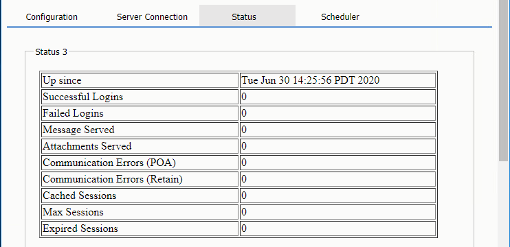 This tab will show you if the Stubbing server was able to connect to the Retain Server.