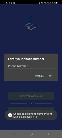 Open the RetainService application, If the application is unable to get the phone number from the SIM, it displays a popup to enter the phone number. Enter the phone number.