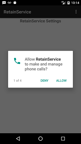 Allow RetainService to make and manage phone calls.