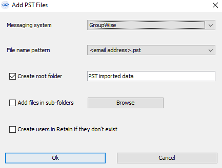 Users can import messages from the PST archive for either existing users in Retain, or if the user does not currently exist in Retain, it will be automatically created.