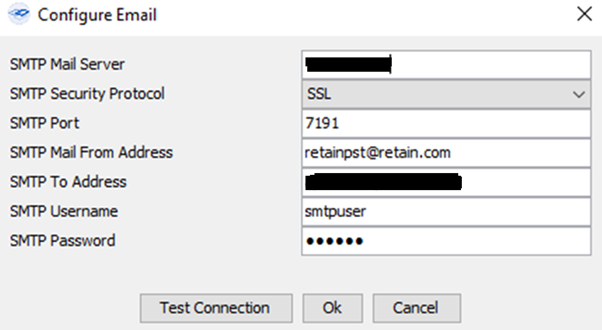 To receive a notification email, an SMTP connector needs to be specified and settings provided. Security protocol options are: ‘Unencrypted, TLS, and SSL’. Test the connection to ensure the settings are correct.