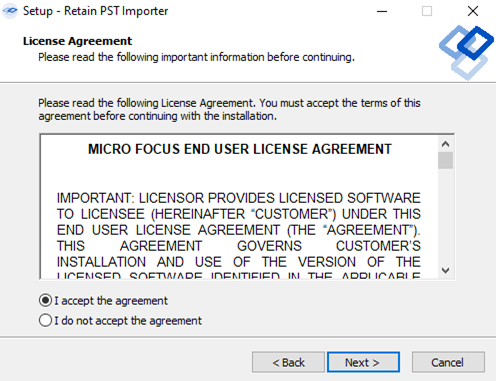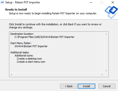 Installation of the PST Importer is simple. Locate the ‘Retain PST Importer Install.exe’ file and run it.