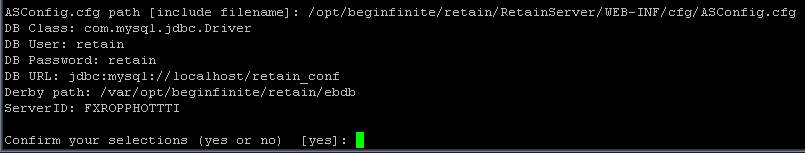 After selecting ‘yes’, the migration utility will setup the retain database with the information just provided along with the current configuration settings in the Retain 1.x configuration database.