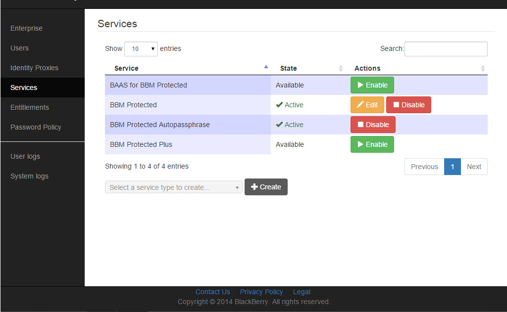 Enter ‘entitlements’ and invite users/devices to be added to the service (In this case BBM Enterprise)