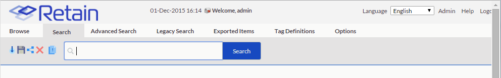 The search in Retain 4 is designed to work much like a Google search, with anticipated auto-correct search terms. The Search tab will allow searching across the entire Archive for administrators, while users will only be able to search their own archive.