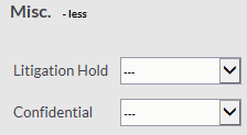 The Misc option contains limits for the Litigation hold and the Confidential tags. They have two settings: True or False. A Setting of ‘True’ restricts all results to only items which have the selected tag.