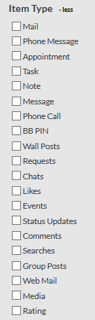 The Item Source criteria option limits the results to a particular source. This source can be limited to show ‘received’, ‘personal’, ‘sent’, or ‘draft’ items.