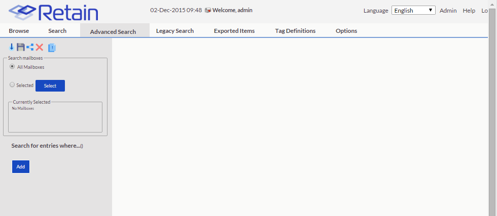 The system will begin to display results as soon as either the search mailboxes have been specified, or new search criteria has been added. To add new criteria, select the ‘Add’ button.