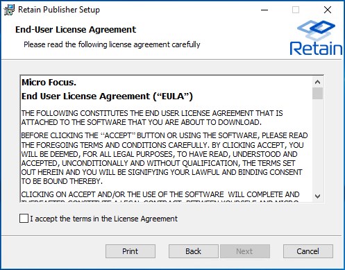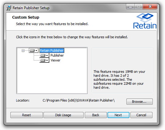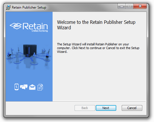 The Retain Publisher installation is very similar to the Viewer installation. Basic questions are asked, and the installer checks for .NET 3.5 SP1 before copying or installing any files. Click ‘Next’ to continue.