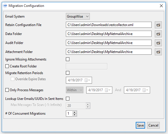 Migrate Retention Periods: This option will migrate the expiration date of the migrated messages into Retain.