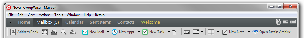 The GroupWise Client Plugin provides access to the logged-in user's Retain Archive from the GroupWise Client interface. The plugin adds a Retain Menu item as well as a Retain button along the top ribbon for easy web access to the archive. These buttons will open a new browser window and log the user into Retain automatically. Additionally, the plugin may hide the native GroupWise Archive option if selected during the install.