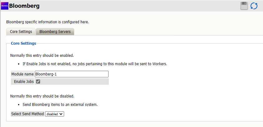 Path: Retain Server Manager > Configuration > Module Configuration > Bloomberg-Configure > Core Settings