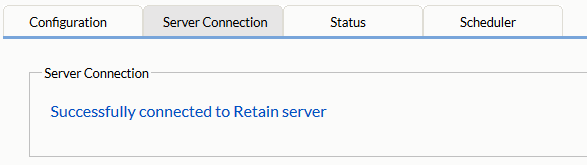 Verify the Retain Server connection success by selecting the Server Connection tab.